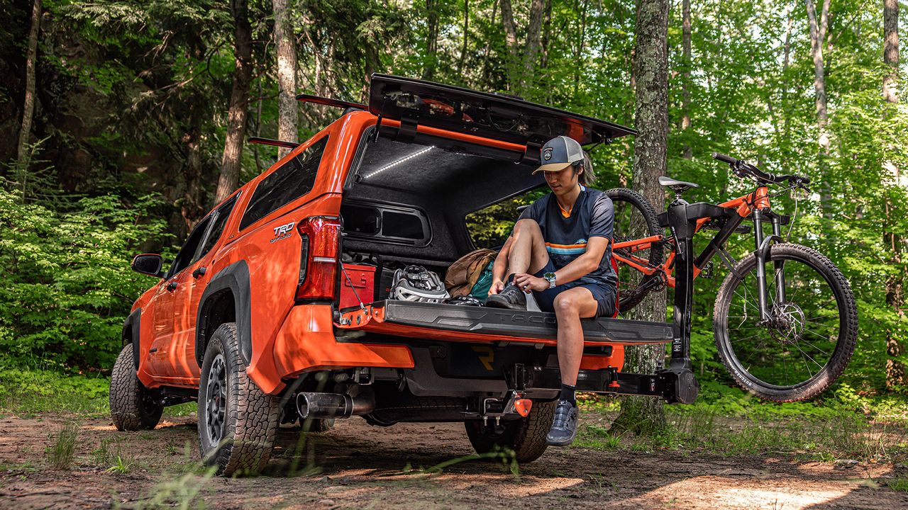 Exclusive full fiberglass walk-in rear door allows you to remove the tailgate from your truck for ultimate cargo access and camping (optional).
