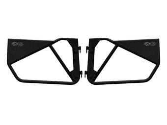 • Tube Doors: Rugged, open-air doors constructed from tubular steel for maximum strength. Tube doors offer exceptional impact protection and an open-air driving experience, ideal for the Jeep purist or avid off-roader. While most tube doors follow the same form factor as half doors, like Havoc Offroad Tube Doors, others feature full frames, like Fab Fours Full Surround Tube Doors.