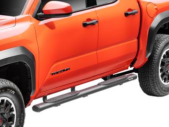 RealTruck offers Go Rhino running boards and nerf bars in various sizes, including length and step dimensions. Length-wise, Go Rhino offers cab-length steps, in which the step runs the length of the cab, and wheel-to-wheel, in which the step runs from the start of the cab to just before the rear tire. On wheel-to-wheel applications, Go Rhino often adds a step surface at the bedside, allowing easy access to your valuables and tools in your pickup’s bed!