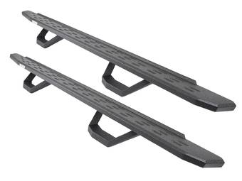 • Drop Steps: Drop steps are similar to nerf bars, featuring a central tube that tucks tightly against the body and extends the length of the cab. They also feature welded-on U-Shaped hoop steps at each door. These steps are sold in pairs and feature application-specific fitments, bolting to existing holes in the chassis.