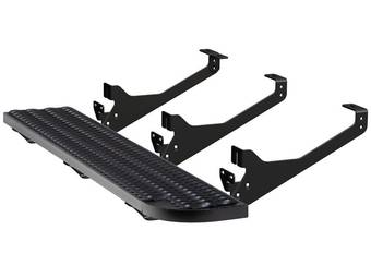 Alternatively, conventional running boards feature fixed-position mounting brackets. They’re available in varying widths and finishes, ranging from narrow 3-in. steps to extra-wide 6-in. steps and above.