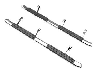 Alternatively, conventional running boards feature fixed-position mounting brackets. They’re available in varying widths and finishes, ranging from narrow 3-in. steps to extra-wide 6-in. steps and above.