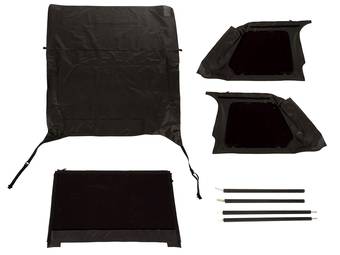 • Hybrid: Hybrid soft tops, like the Bestop Supertop Ultra Soft Top, feature a unique, hybrid design that allows for multiple top variations from one product! These tops are modular, allowing you to choose between a fully-enclosed, weather-resistant top, a sunrider-style open top, a safari-style bikini top, and fully open!