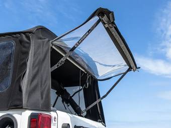 • Frameless Tops: Frameless tops don’t feature the conventional alloy frames of a factory soft top; instead, they attach directly to the sport bar for an easy installation and sleek, fast-back-style appearance.