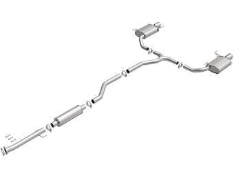 Axle-back exhaust systems replace only your vehicle’s rear exhaust section, which usually consists of items behind the rear axles, like rear exhaust pipes, mufflers, and exhaust tips. These systems typically leave your vehicle’s factory B-pipe, or “mid-pipe,” intact, offering moderate performance gains and decibel increases. However, considering they include fewer components, they're typically less expensive and easier to install.