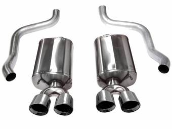 Axle-back exhaust systems replace only your vehicle’s rear exhaust section, which usually consists of items behind the rear axles, like rear exhaust pipes, mufflers, and exhaust tips. These systems typically leave your vehicle’s factory B-pipe, or “mid-pipe,” intact, offering moderate performance gains and decibel increases. However, considering they include fewer components, they're typically less expensive and easier to install.