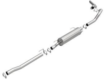 Axle-back exhaust systems replace only your vehicle’s rear exhaust section, which usually consists of items behind the rear axles, like rear exhaust pipes, mufflers, and exhaust tips. These systems typically leave your vehicle’s factory B-pipe, or “mid-pipe,” intact, offering moderate performance gains and decibel increases. However, considering they include fewer components, they're typically less expensive and easier to install.