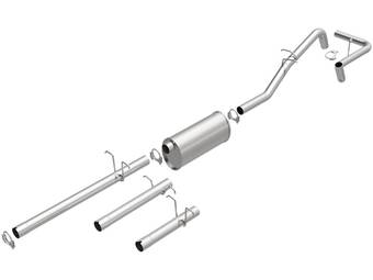 Axle-back exhaust systems replace only your vehicle’s rear exhaust section, which usually consists of items behind the rear axles, like rear exhaust pipes, mufflers, and exhaust tips. These systems typically leave your vehicle’s factory B-pipe, or “mid-pipe,” intact, offering moderate performance gains and decibel increases. However, considering they include fewer components, they're typically less expensive and easier to install.
