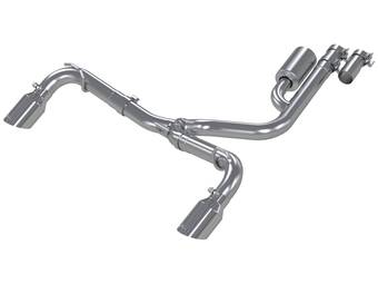 Axle-back exhaust systems replace only your vehicle’s rear exhaust section, which usually consists of items behind the rear axles, like rear exhaust pipes, mufflers, and exhaust tips. These systems typically leave your vehicle’s factory B-pipe, or “mid-pipe,” intact, offering moderate performance gains and decibel increases. However, considering they include fewer components, they're typically less expensive and easier to install.