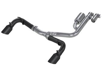 Axle-back exhaust systems replace only your vehicle’s rear exhaust section, which usually consists of items behind the rear axles, like rear exhaust pipes, mufflers, and exhaust tips. These systems typically leave your vehicle’s factory B-pipe, or “mid-pipe,” intact, offering moderate performance gains and decibel increases. However, considering they include fewer components, they're typically less expensive and easier to install.