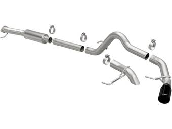 Axle-back exhaust systems replace only your vehicle’s rear exhaust section, which usually consists of items behind the rear axles, like rear exhaust pipes, mufflers, and exhaust tips. These systems typically leave your vehicle’s factory B-pipe, or “mid-pipe,” intact, offering moderate performance gains and decibel increases. However, considering they include fewer components, they're typically less expensive and easier to install.