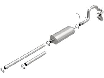 Axle-back exhaust systems replace only your vehicle’s rear exhaust section, which usually consists of items behind the rear axles, like rear exhaust pipes, mufflers, and exhaust tips. These systems typically leave your vehicle’s factory B-pipe, or “mid-pipe,” intact, offering moderate performance gains and decibel increases. However, considering they include fewer components, they're typically less expensive and easier to install.