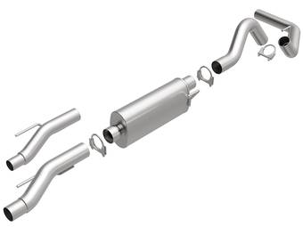 Axle-back exhaust systems replace only your vehicle’s rear exhaust section, which usually consists of items behind the rear axles, like rear exhaust pipes, mufflers, and exhaust tips. These systems typically leave your vehicle’s factory B-pipe, or “mid-pipe,” intact, offering moderate performance gains and decibel increases. However, considering they include fewer components, they're typically less expensive and easier to install.