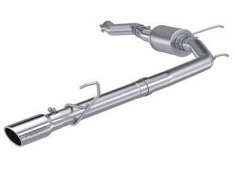 Axle-back exhaust systems replace only your vehicle’s rear exhaust section, which usually consists of items behind the rear axles, like rear exhaust pipes, mufflers, and exhaust tips. These systems typically leave your vehicle’s factory B-pipe, or “mid-pipe,” intact, offering moderate performance gains and decibel increases. However, considering they include fewer components, they're typically less expensive and easier to install.