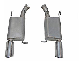Axle-back exhaust systems replace only your vehicle’s rear exhaust section, which usually consists of items behind the rear axles, like rear exhaust pipes, mufflers, and exhaust tips. These systems typically leave your vehicle’s factory B-pipe, or “mid-pipe,” intact, offering moderate performance gains and decibel increases. However, considering they include fewer components, they're typically less expensive and easier to install.
