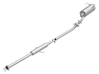 Axle-back exhaust systems replace only your vehicle’s rear exhaust section, which usually consists of items behind the rear axles, like rear exhaust pipes, mufflers, and exhaust tips. These systems typically leave your vehicle’s factory B-pipe, or “mid-pipe,” intact, offering moderate performance gains and decibel increases. However, considering they include fewer components, they're typically less expensive and easier to install.