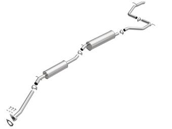 Axle-back exhaust systems replace only your vehicle’s rear exhaust section, which usually consists of items behind the rear axles, like rear exhaust pipes, mufflers, and exhaust tips. These systems typically leave your vehicle’s factory B-pipe, or “mid-pipe,” intact, offering moderate performance gains and decibel increases. However, considering they include fewer components, they're typically less expensive and easier to install.