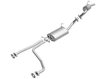 Axle-back exhaust systems replace only your vehicle’s rear exhaust section, which usually consists of items behind the rear axles, like rear exhaust pipes, mufflers, and exhaust tips. These systems typically leave your vehicle’s factory B-pipe, or “mid-pipe,” intact, offering moderate performance gains and decibel increases. However, considering they include fewer components, they're typically less expensive and easier to install.
