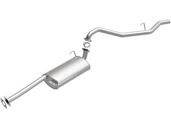 Axle-back exhaust systems replace only your vehicle’s rear exhaust section, which usually consists of items behind the rear axles, like rear exhaust pipes, mufflers, and exhaust tips. These systems typically leave your vehicle’s factory B-pipe, or “mid-pipe,” intact, offering moderate performance gains and decibel increases. However, considering they include fewer components, they're typically less expensive and easier to install.