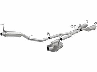 Cat-back exhaust systems replace every component behind the catalytic converter, including most piping, mufflers, resonators, and tailpipes. Considering cat-back exhausts replace more restrictions, they typically offer increased performance and noise compared to axle-back systems. However, they’re also more complicated to install and more expensive.