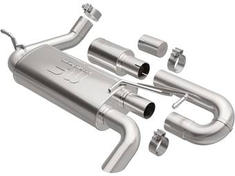 Axle-back exhaust systems replace only your vehicle’s rear exhaust section, which usually consists of items behind the rear axles, like rear exhaust pipes, mufflers, and exhaust tips. These systems typically leave your vehicle’s factory B-pipe, or “mid-pipe,” intact, offering moderate performance gains and decibel increases. However, considering they include fewer components, they're typically less expensive and easier to install.