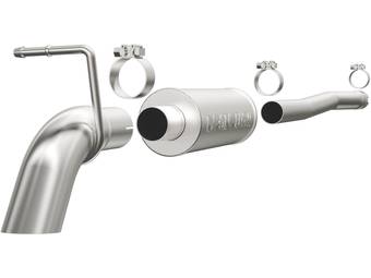 Axle-back exhaust systems replace only your vehicle’s rear exhaust section, which usually consists of items behind the rear axles, like rear exhaust pipes, mufflers, and exhaust tips. These systems typically leave your vehicle’s factory B-pipe, or “mid-pipe,” intact, offering moderate performance gains and decibel increases. However, considering they include fewer components, they're typically less expensive and easier to install.