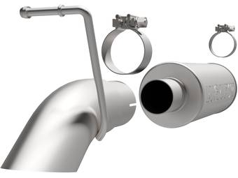 Axle-back exhaust systems replace only your vehicle’s rear exhaust section, which usually consists of items behind the rear axles, like rear exhaust pipes, mufflers, and exhaust tips. These systems typically leave your vehicle’s factory B-pipe, or “mid-pipe,” intact, offering moderate performance gains and decibel increases. However, considering they include fewer components, they're typically less expensive and easier to install.