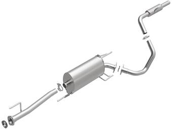 Axle-back exhaust systems replace only your vehicle’s rear exhaust section, which usually consists of items behind the rear axles, like rear exhaust pipes, mufflers, and exhaust tips. These systems typically leave your vehicle’s factory B-pipe, or “mid-pipe,” intact, offering moderate performance gains and decibel increases. However, considering they include fewer components, they're typically less expensive and easier to install.