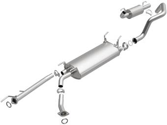 Axle-back exhaust systems replace only your vehicle’s rear exhaust section, which usually consists of items behind the rear axles, like rear exhaust pipes, mufflers, and exhaust tips. These systems typically leave your vehicle’s factory B-pipe, or “mid-pipe,” intact, offering moderate performance gains and decibel increases. However, considering they include fewer components, they're typically less expensive and easier to install.