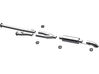 Axle-back exhaust systems replace only your vehicle’s rear exhaust section, which usually consists of items behind the rear axles, like rear exhaust pipes, mufflers, and exhaust tips. These systems typically leave your vehicle’s factory B-pipe, or “mid-pipe,” intact, offering moderate performance gains and decibel increases. However, considering they include fewer components, they're typically less expensive and easier to install.
