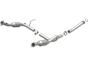 • Y-Pipes & Mid-Pipes: Y-Pipes and Mid-Pipes are portions of the exhaust piping. Y-pipes converge both banks of the exhaust into a single outlet, while mid-pipes connect the outlet of the Y-pipe to the axle-back.