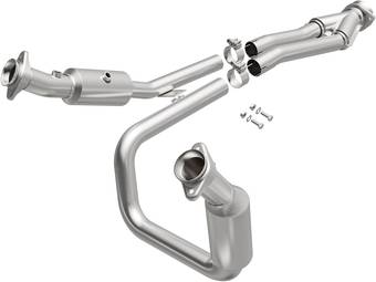 • Y-Pipes & Mid-Pipes: Y-Pipes and Mid-Pipes are portions of the exhaust piping. Y-pipes converge both banks of the exhaust into a single outlet, while mid-pipes connect the outlet of the Y-pipe to the axle-back.