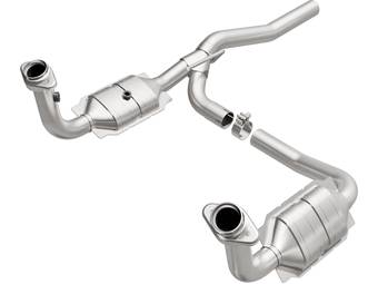 • Y-Pipes & Mid-Pipes: Y-Pipes and Mid-Pipes are portions of the exhaust piping. Y-pipes converge both banks of the exhaust into a single outlet, while mid-pipes connect the outlet of the Y-pipe to the axle-back.