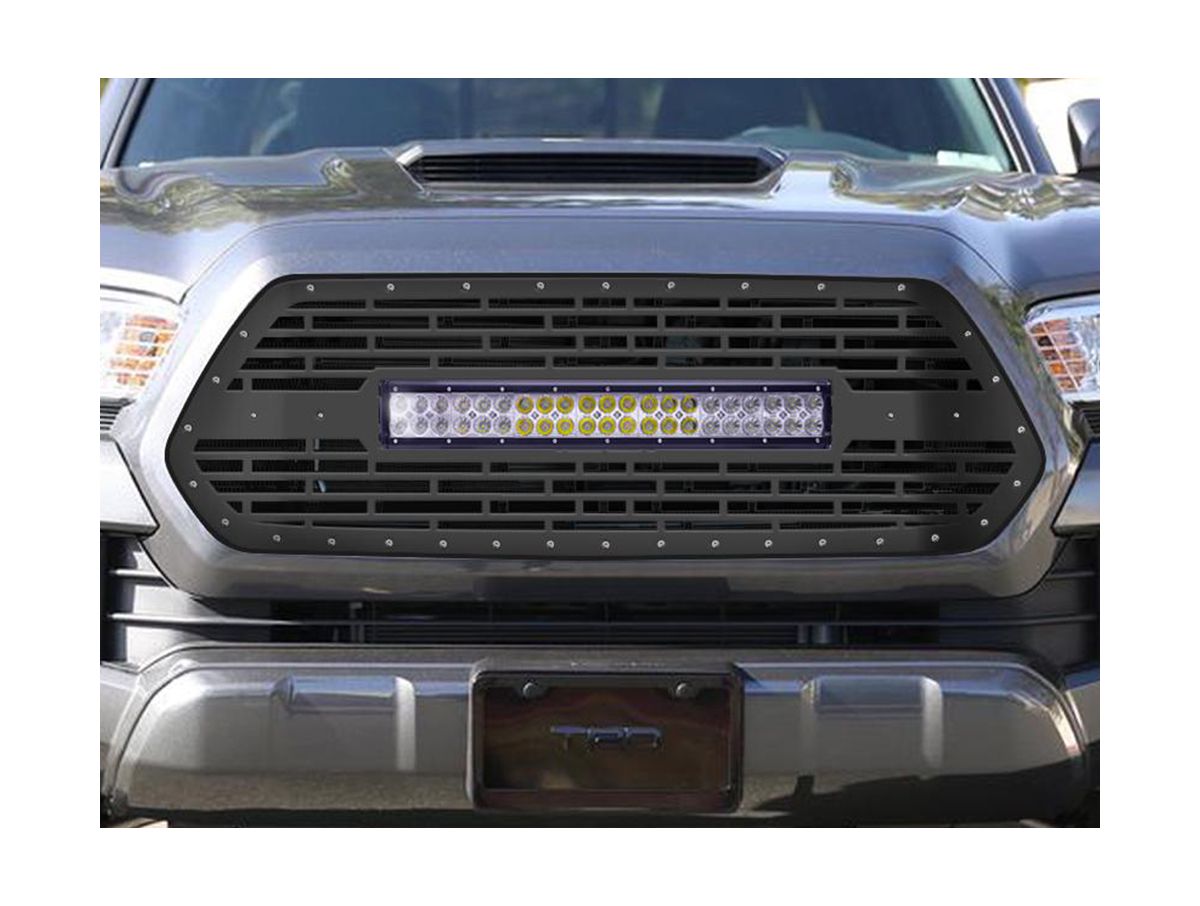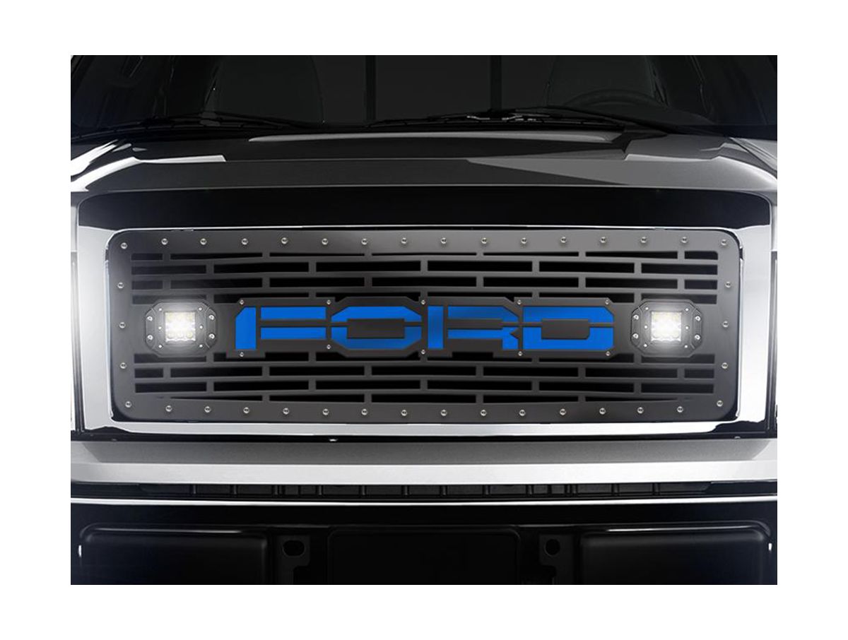 Give your front-end a new look with 300 Industries LED grilles. 300 Industries has come out with a durable satin black grille that includes two LED pods or a LED light bar depending on your vehicle. Used for off-road use only, the LED lights can be turned off and on from inside the cab.