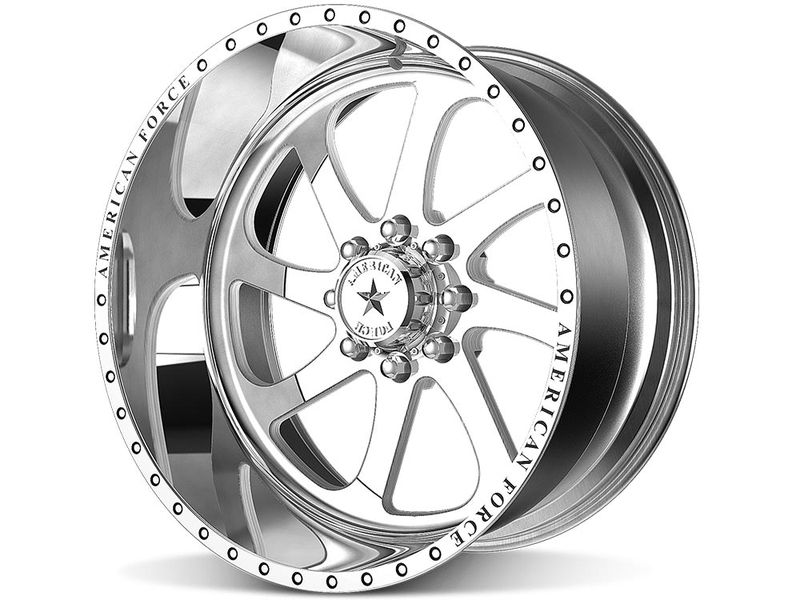 The rim is made from a solid block of forged aluminum which allows American Force to design a wheel with shapes and sizes that conventional cast wheels can't support. Forged aluminum allows for a stronger lighter wheel with completely custom dimensions and designs.