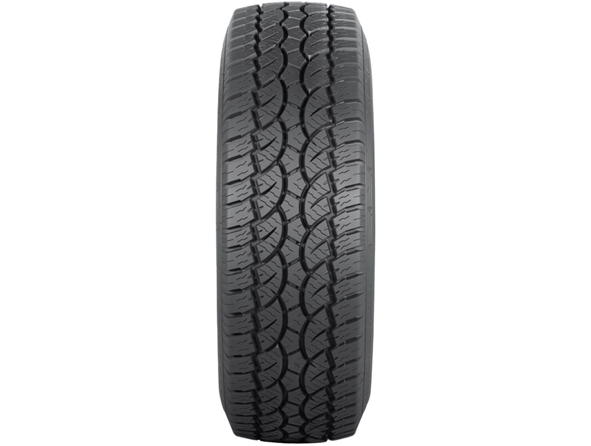 Americus Rugged All-Terrain Tires are aggressive on-road and off-road tires built for adventuring. The unique connected-center-rib design offers a stable footprint on and off road. Variable circumferential grooves and shoulder design evacuates water to prevent hydroplaning while reducing road noise in any condition. The Americus Rugged All-Terrain Tires are also backed by a 5-year limited warranty on craftsmanship and a 50,000 mile treadwear warranty.