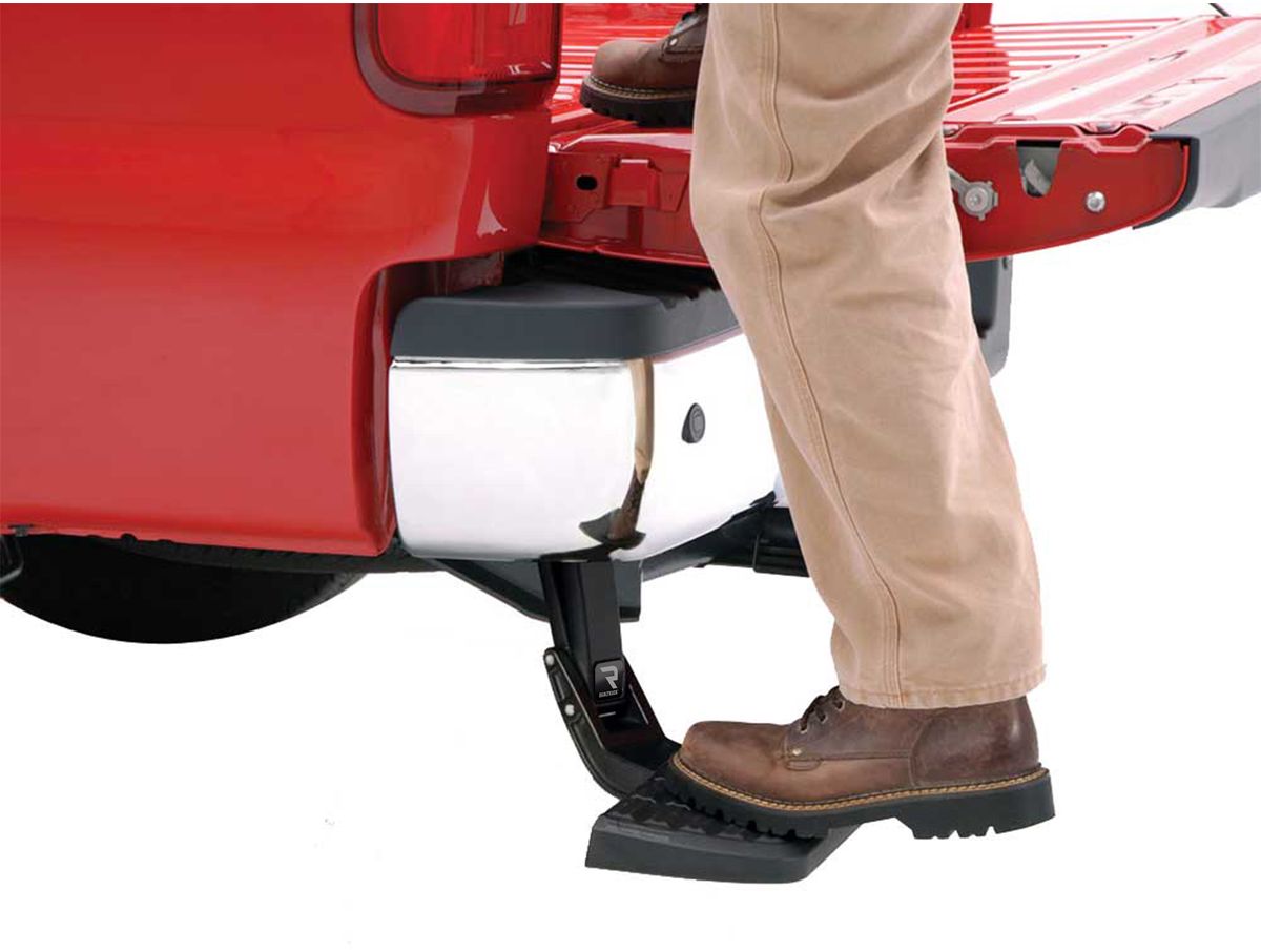 The AMP Research BedStep possesses a convenient retractable design that tucks high and tight against your truck’s rear bumper. Whenever bed access is needed, kick the step pad downwards to deploy it. When you’re finished loading and unloading cargo, kick the step pad upwards to retract it.