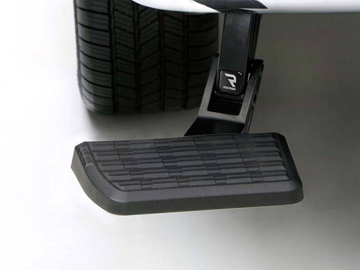The AMP Research BedStep™, by RealTruck, is the ultimate addition to any pickup truck—whether used for work, play, or both. This innovative retractable step system provides truck owners with a wide, non-slip step surface at the rear corner of the bed, enabling efficient bed access with loading and unloading cargo.