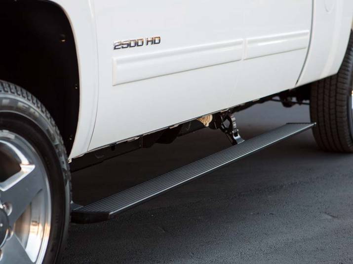 For the most unique and practical running boards available, go with the Amp Research PowerStep Running Boards. This is an electronic running board that tucks under the truck when the doors are closed, but once the door opens the running boards will quickly extend out to provide a step. This will save you ground clearance while you're driving but, makes life easier with its automatic motion. Built with Anti-Pinch technology, these running boards are made with safety in mind. If the running board feels any resistance when retracting, they will re-lower so the obstruction can be removed.