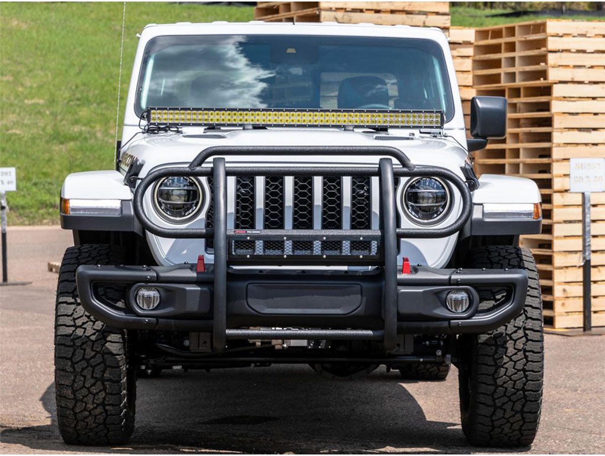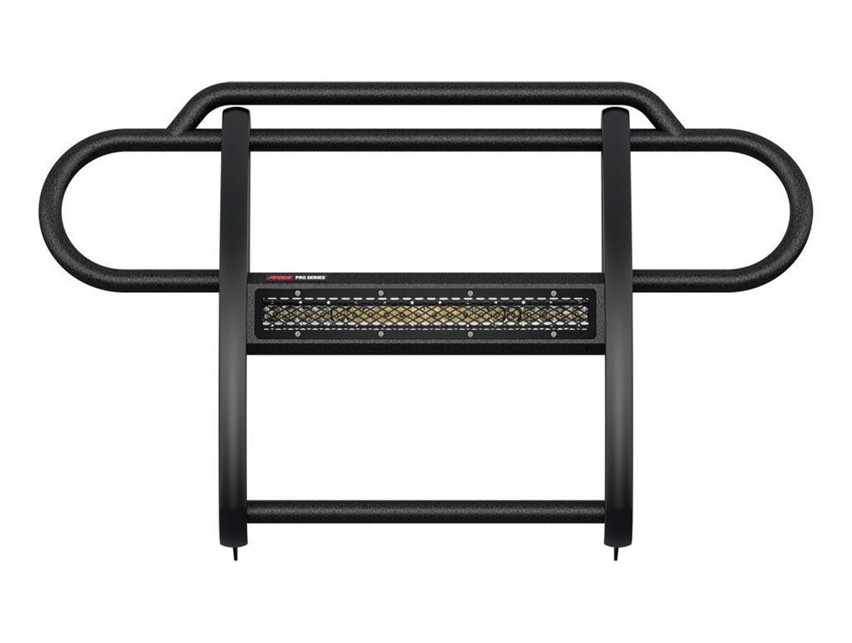 What sets the Aries Pro Series Grille Guard apart from others, is that it comes with a center mesh cover plate and the option to add a 30" single row LED light bar behind it. This system adds style and protects your LEDs from the elements and theft.