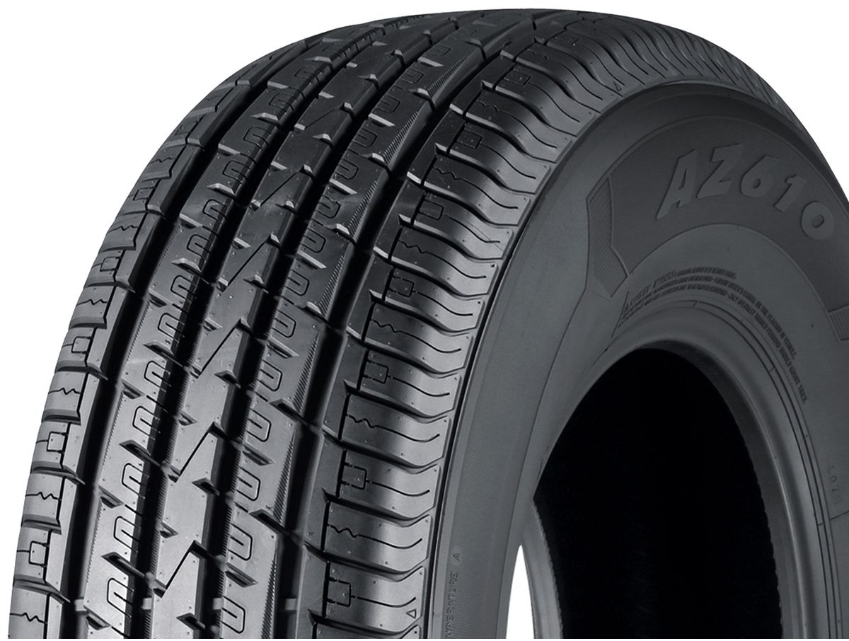Comfort meets performance on the AZ610 with its solid center rib for responsive handling, 4 channels for excellent water evacuation and unique bevels on the inside tread block to reduce road noise. Gently sloped shoulder blocks provide stable and confident steering feel during hard corners. Cut-outs in center ribs help reduce road noise at both high and low speeds. Deep shoulder channels work with the circumferential channels to evacuate water away from the contact patch and enhance grip in wet conditions. Complementary beveled outer edges of the inside tread ribs have beveled edges to provide more biting edges for increased traction as well as help reduce road noise. Four circumferential channels work with the 3 solid circumferential ribs to enhance straight line stability as well as help evacuate water and slush out of the contact patch. Sipes on every tread block give extra biting edges in the snow and slush for winter traction. The AZ610 tires are covered under a 3-year standard limited warranty and an impressive 60,000 mile treadwear warranty. Upgrade your ride and get a set of Atturo AZ610 Tires today!