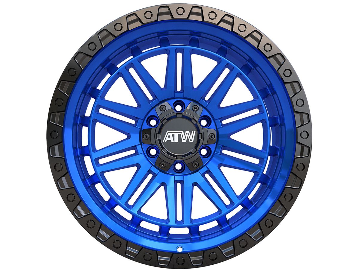 Each wheel is constructed from a one-piece, durable cast aluminum. The wheel is then covered in a candy blue finish that is offset by the black simulated beadlock ring around the outer edge. And to top off the look, the center cap is adorned with the ATW logo.