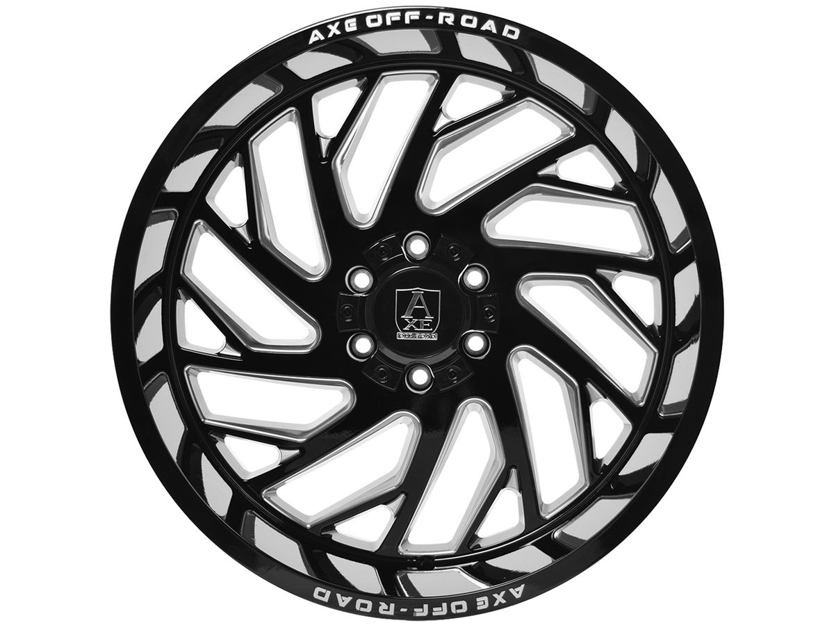 Constructed to last, these wheels are made of a durable, one-piece cast aluminum. The wheel is then covered in a gloss black finish that is offset with Axe Offroad engraved into the flange. The center cap is adorned with the Axe logo to top off the look.