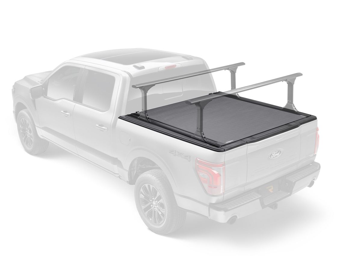 The bed rails are fitted with integrated T-slot channels that enable you to mount various over-the-bed racks and cargo management accessories, giving your truck a level of capability that goes beyond the average tonneau cover. And with the cover rolled fully forward, the Revolver X4ts provides access to the full bed so you can have your rack and easily access your cargo too.