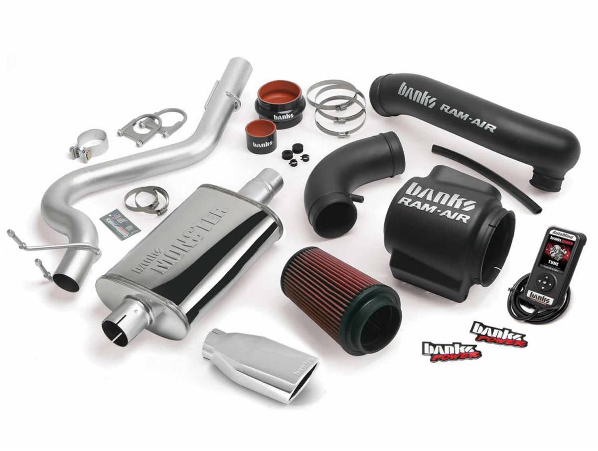 The Banks Stinger Power Bundles affordably augments truck muscle and durability with impressive HP, torque, and MPG gains. The Stinger builds onto the Git-Kit by adding a filter and depending on your application it may also add a wastegate actuator, electronic gauges, or a higher calibrated tuner. The result is higher mid-range and upper-end torque. You will find that this kit with optimize airflow, air density, continuous power, and miles per gallon. Stinger's upgrades reshape the fuel curve to match the improved airflow. The kit honors the host vehicle and improves longevity on your gas or diesel engine. If the all-inclusive Banks PowerPack is too involved for you, then this is the perfect option for your truck. Install the Banks Stinger Power Bundle and add impressive power, efficiency and durability - and sound great doing it!