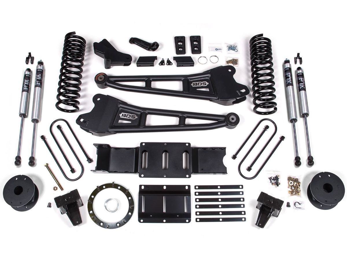 Upgrade your vehicle with the BDS 5.5" Radius Arm Lift Kit for optimized performance on and off the road. With heavy-duty radius arms, specialized coil springs, and your choice of shocks, this kit provides increased ground clearance, improved steering, and a smooth ride. It includes all necessary components for a comprehensive suspension upgrade. Choose from the standard kit or the enhanced version with FOX Performance Elite shocks for the ultimate off-road experience. BDS and FOX deliver exceptional quality and warranty protection.