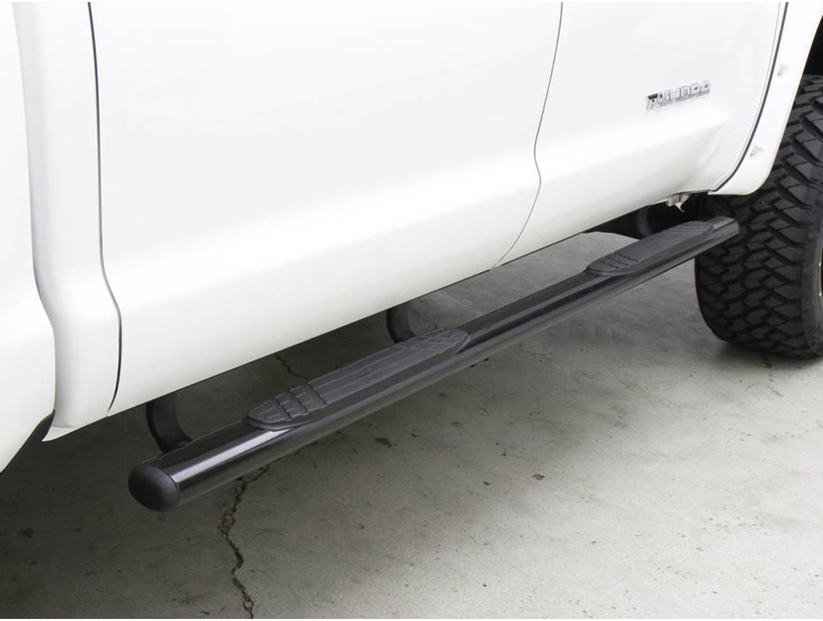 4" WIDESIDER Platinum Kit: Bars + Brackets - Channel mount. Textured black powder-coat. Features composite end caps. Channel mount design fits with all WIDESIDER bracket kits. Available for regular, extend and crew cab pick up trucks, also for SUV’s and CUV’s. Bolt-on, no-drill installation for most applications. Features SuperGrippy step pads for sure footing. Bar lengths available for most trucks. Textured black powder-coat finish with a 5 year warranty.