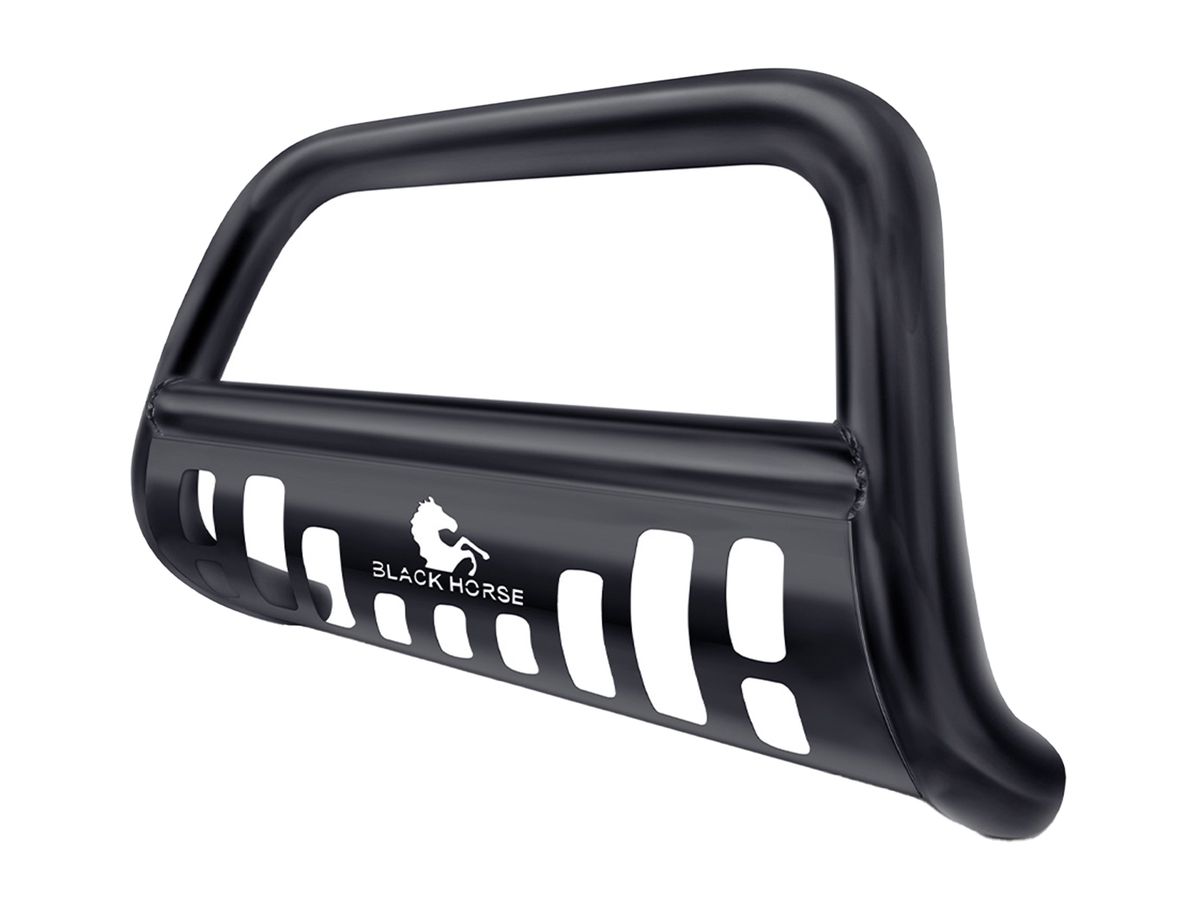 The Black Horse Black Bull Bars are high quality bull bars that can be acquired without breaking the bank. The Black Horse Black Bull Bar is made from 2.5 or 3-inch diameter steel tubing and are available in either a powdercoat or textured black finish. Most models also let you choose either a black or polished stainless skid plate. The Black Horse logo on the skid plate adds a nice touch as well.
