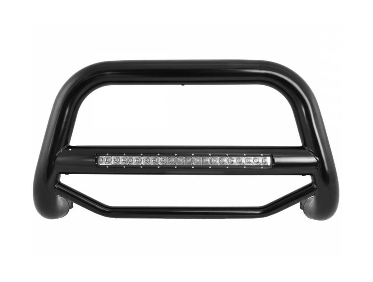 Check out the Max Beacon Bull Bar by Black Horse. This bull bar is made to provide the best protection against minor impacts and damage, all while adding to the style of your vehicle. The Black Horse Max Beacon Bull Bar is constructed from durable steel tubing and comes in a black powdercoat finish. As an added bonus, these bull bars have an integrated LED single row light bar to help with extra illumination on and off-road.