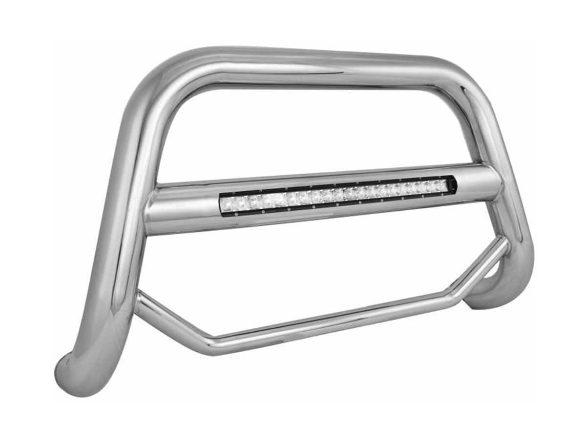 Check out the Max Beacon Bull Bar by Black Horse. This bull bar is made to provide the best protection against minor impacts and damage, all while adding to the style of your vehicle. The Black Horse Max Beacon Bull Bar is constructed from 304 stainless steel tubing and comes in a polished stainless finish. As an added bonus, these bull bars have an integrated LED single row light bar to help with extra illumination on and off-road.